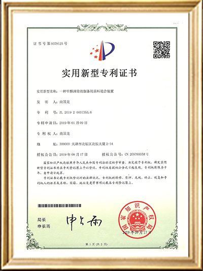 實(shí)用新型專利證書(shū)(一種甲醛清除劑的原料存儲(chǔ)